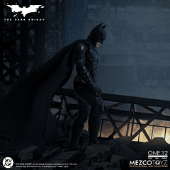 Batman luce un Batitraje táctico blindado, fiel a la pantalla, con placas esculpidas y una capa articulada, con una armadura detallada desde el cuello hasta las botas. Por primera vez en una figura de One:12 Collective, Batman presenta nuevas expresiones faciales intercambiables y oculares que permiten una multitud de expresiones faciales distintivas. Incluye un retrato de Bruce Wayne sin máscara, con la imagen de Christian Bale.